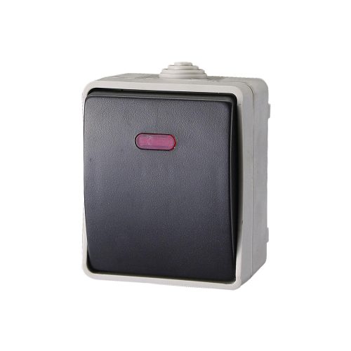 AQUATOP 9877H falon kívüli nyomókapcsoló, 1 billenő, 10 A, IP54, szürke, jelzőfény