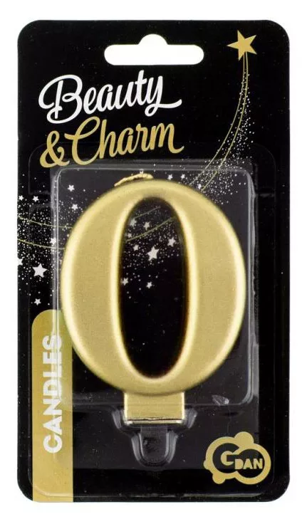 Arany 0-ás Metallic számgyertya, tortagyertya