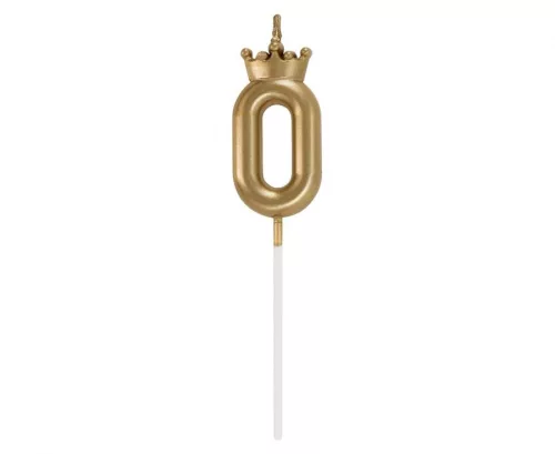 Arany Champagne Crown 0-ás számgyertya, tortagyertya 6 cm
