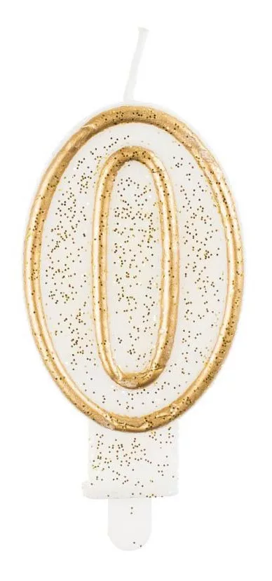 Arany csillámos számgyertya, tortagyertya 0-ás