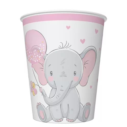 Baby elefánt Pink Balloon papír pohár 8 db-os 250 ml