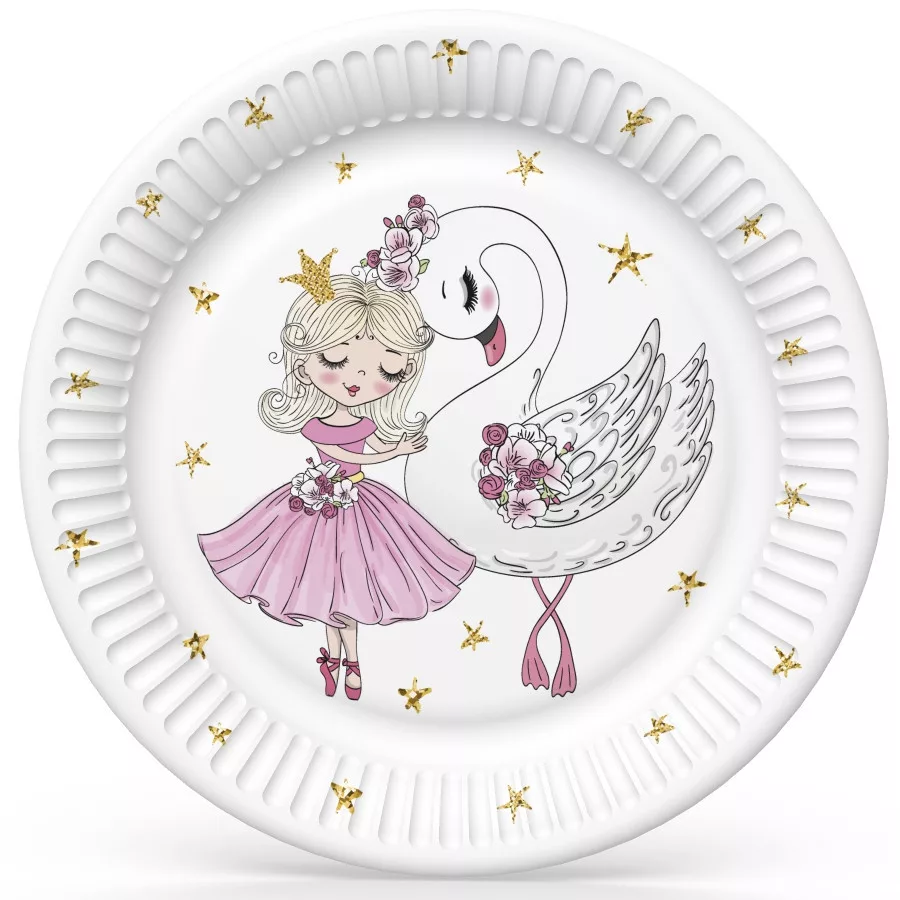 Balett, Balerina With Swan papírtányér 8 db-os 18 cm