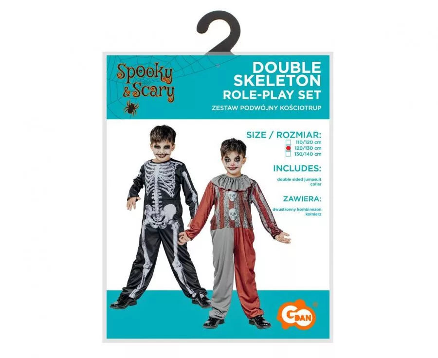 Csontváz és Bohóc Skeleton kifordítható jelmez 130/140 cm