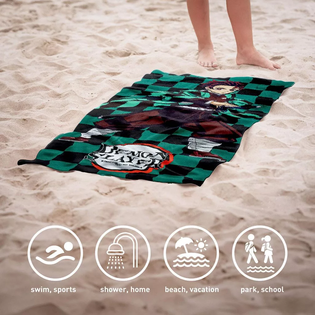 Demon Slayer Green fürdőlepedő, strand törölköző 70x140cm (Fast Dry)