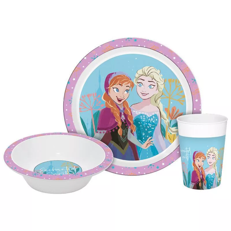 Disney Jégvarázs Enchanted étkészlet, micro műanyag szett Dobozban