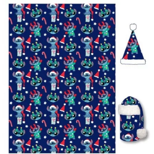 Disney Lilo és Stitch, A csillagkutya Holiday Karácsonyi flanel takaró és sapka szett
