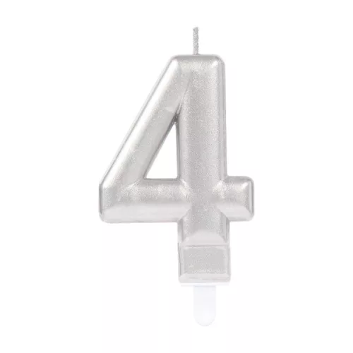Silver Metallic, Ezüst számgyertya, tortagyertya 4-es
