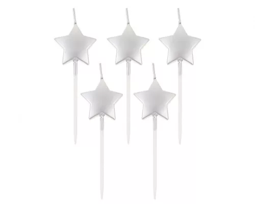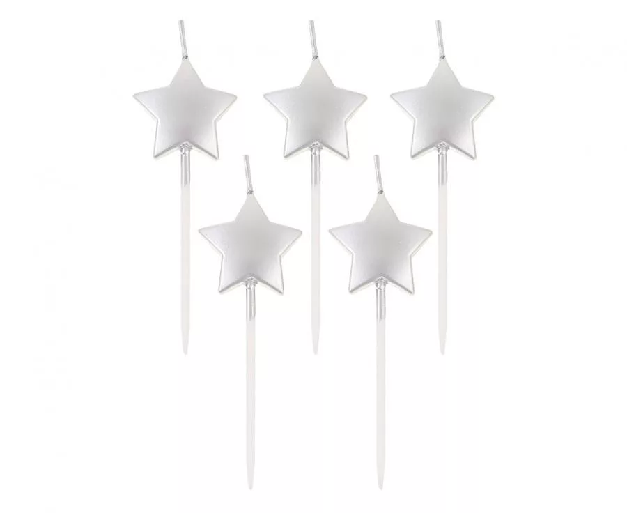 Ezüst csillag tortagyertya, gyertya szett 5 db-os