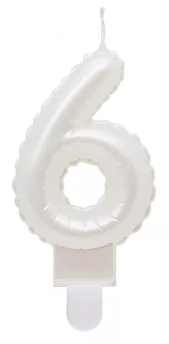 Fehér 6-os Pearly számgyertya, tortagyertya