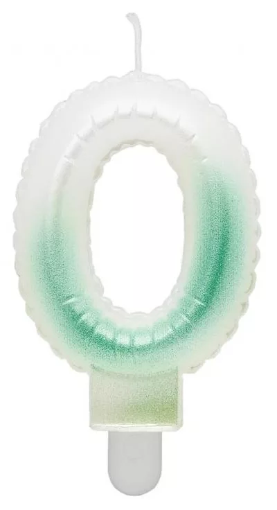 Fehér-Zöld 0-ás Ombre számgyertya, tortagyertya