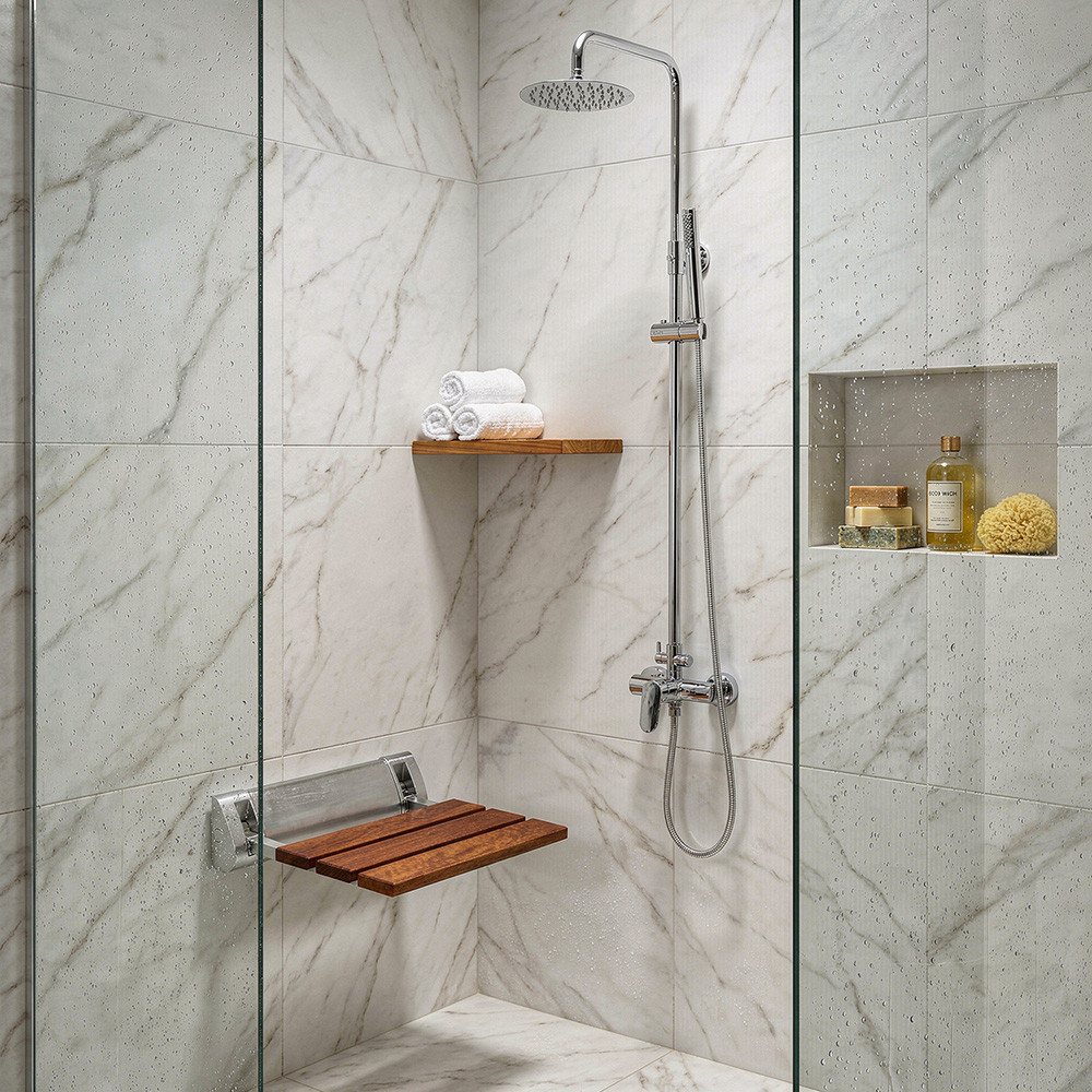 A felhajtható kialakításnak köszönhetően, kisebb helyiségekbe is ideális választás. Az ülőke használaton kívül, könnyedén felhajható.