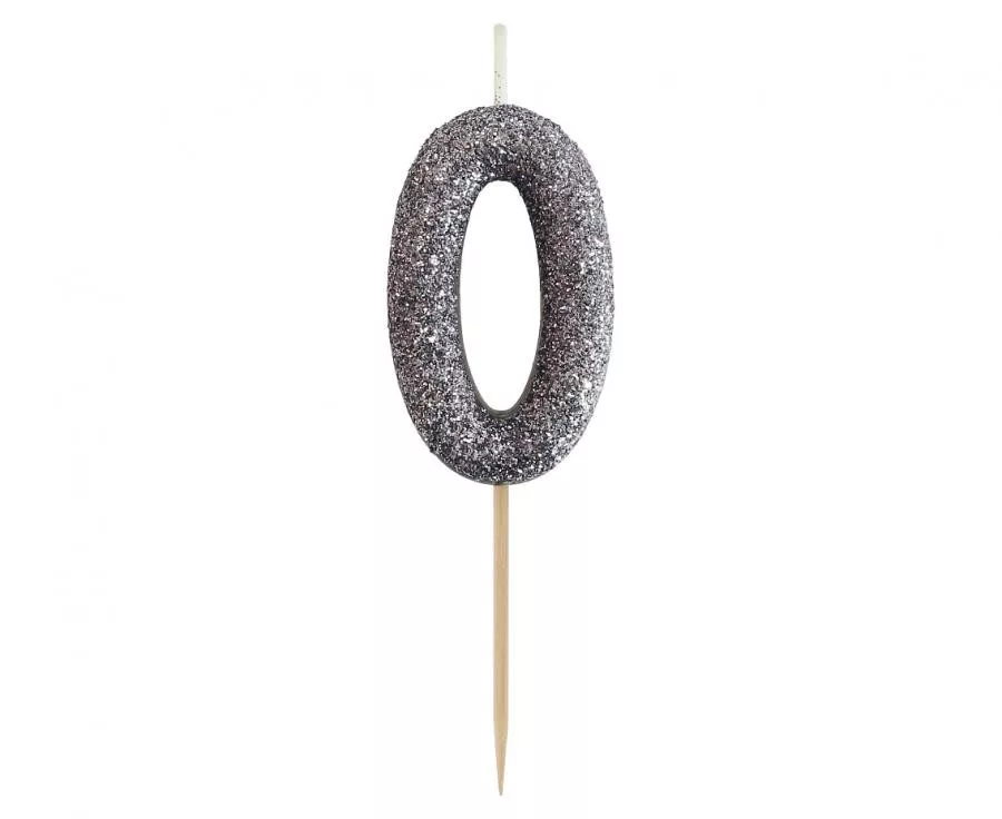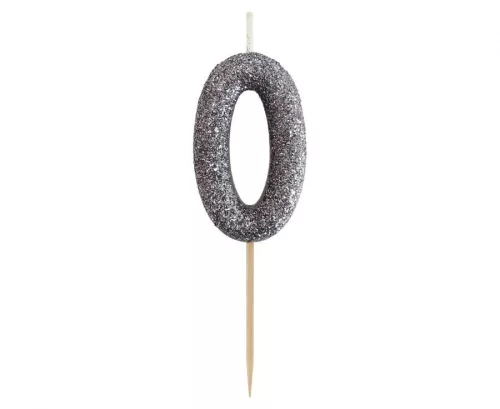 Fekete Glitter Black számgyertya, tortagyertya 0-ás