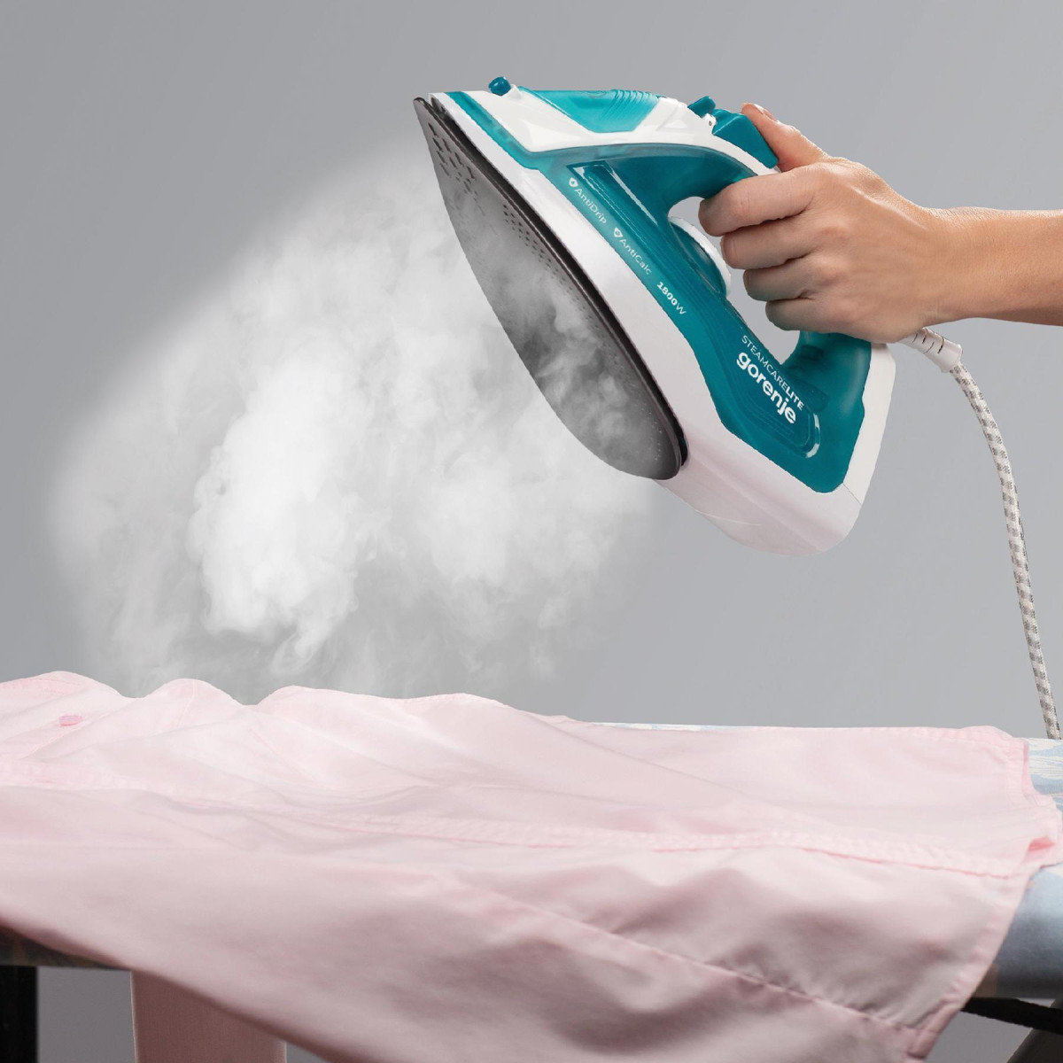 Gorenje SIH1800TQC gőzölős vasaló, 1800 W, UltraSteel talp, öntisztítás, 0,2 literes víztartály, türkiz-fehér