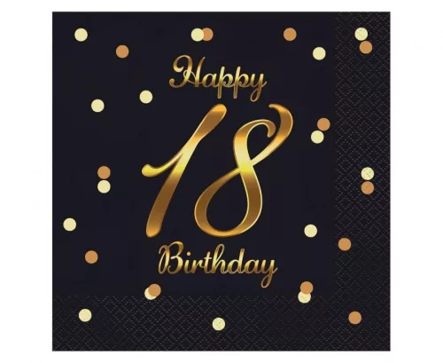 Happy Birthday 18 B&C Gold szalvéta 20 db-os 33x33 cm