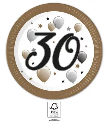 Happy Birthday 30 Milestone papírtányér 8 db-os 23 cm FSC