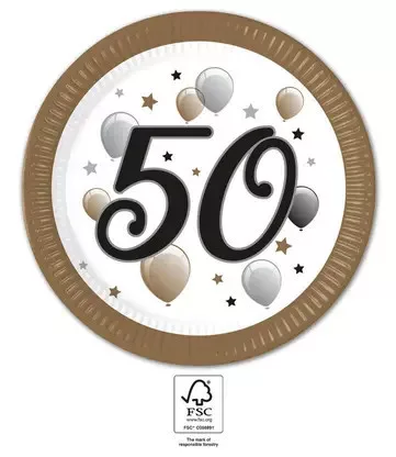 Happy Birthday 50 Milestone papírtányér 8 db-os 23 cm FSC