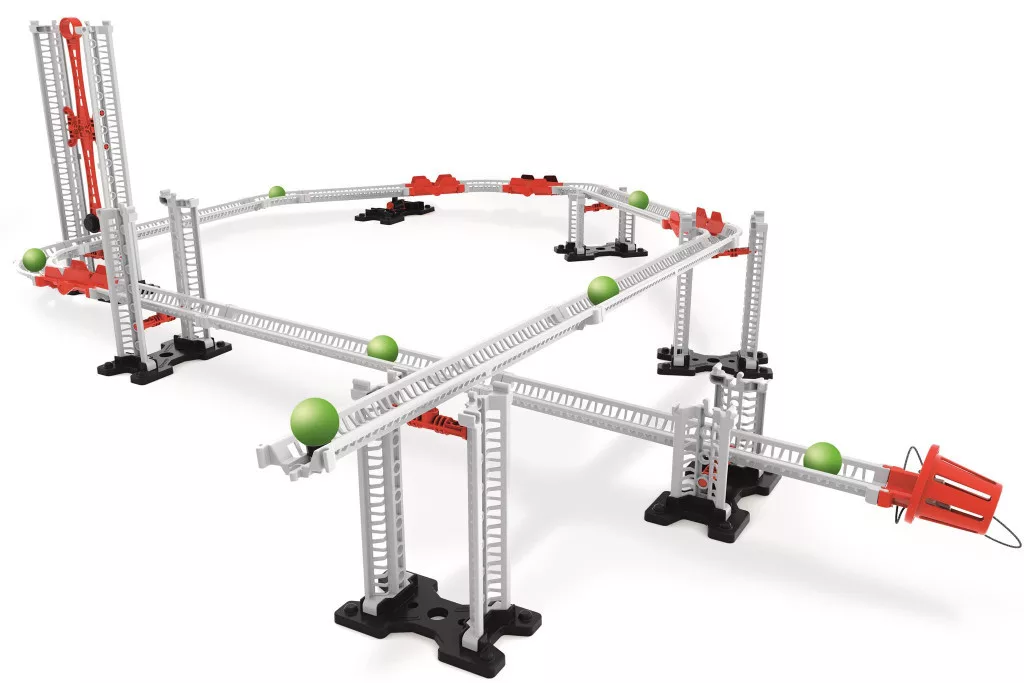 - felépítheted pályarendszeredet, melynek kihívása, hogy olyan pályát alkoss, amelyen a végighaladó golyók hatására több elem is mozgásba lendüljön