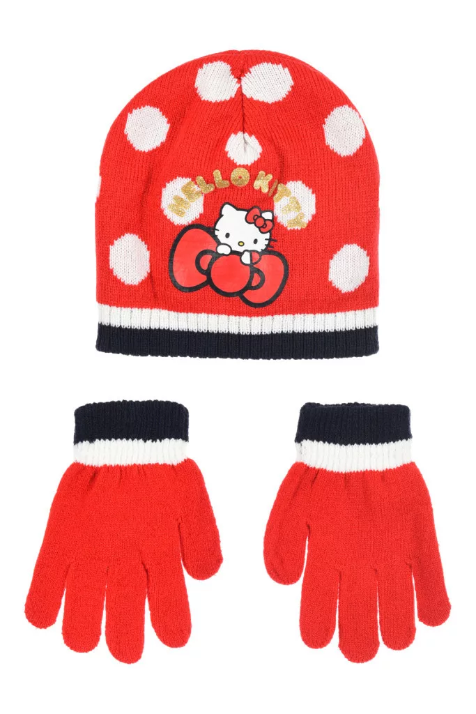 Hello Kitty Cute Dots Red gyerek sapka + kesztyű szett 52 cm