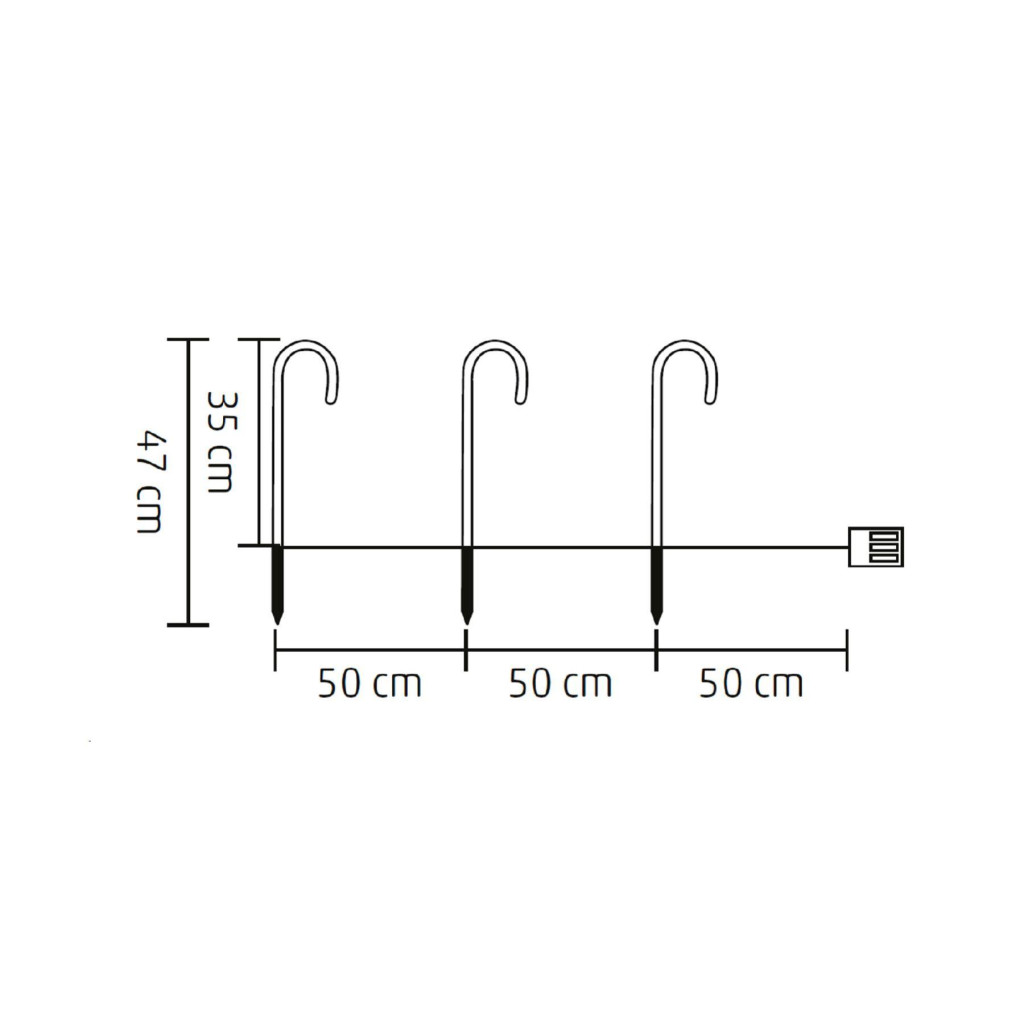 magasság a leszúrótüske aljáig: 47 cm / csak a cukorbot magassága: 35 cm / karók távolsága: 50 cm