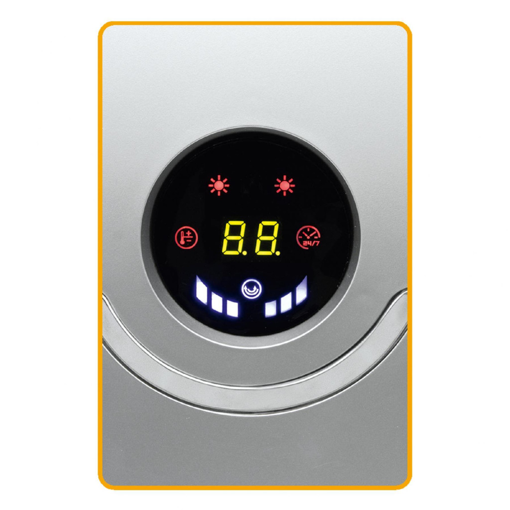 Ez az elegáns ezüst színű készülék két fűtési fokozattal rendelkezik: 1000 W és 2000 W, amelyek lehetővé teszik a hőmérséklet igény szerinti beállítását. A fali elhelyezésű fűtőtest kompakt méretének (58,5 x 19,5 x 13 cm) és könnyű súlyának (3,1 kg) köszönhetően szinte bárhol elhelyezhető a lakásban. A készülék távirányítóval vezérelhető, ami kényelmes használatot biztosít. A heti programozhatóság és az ablaknyitás érzékelés funkciók lehetővé teszik, hogy a fűtést előre beállítsa és optimalizálja az energiafelhasználást. A készülék 8 órás kikapcsolásidőzítővel rendelkezik, amely további kényelmet biztosít.