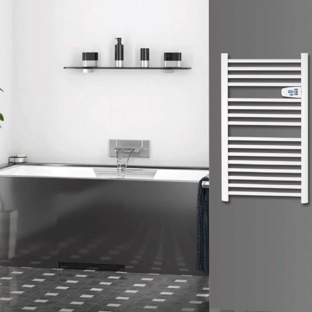 Ez az 500 W névleges teljesítményű törölközőszárító gyorsan és hatékonyan szárítja meg törölközőit, miközben a fürdőszobában is kellemes meleget biztosít. A beépített kezelőfelület és LCD kijelző segítségével könnyedén beállíthatja a kívánt hőmérsékletet és időzítési programot. Az elektronikus termosztát precíz szabályozást tesz lehetővé, míg a heti programozási funkció maximális rugalmasságot biztosít, így a készülék mindig az Ön igényeihez igazodik.