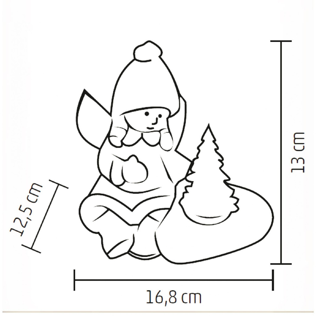 Ez a beltéri kivitelű angyal figura egy világító fenyővel van díszítve, amelyet egy melegfehér LED világít meg. Az aprólékosan kidolgozott kerámia alapanyag biztosítja, hogy a dísz stílusos és tartós maradjon, miközben finom, ünnepi fényt áraszt. Az angyal dekoráció kiváló választás asztali vagy polcra helyezett dekorációként, és kellemes kiegészítője lehet bármely helyiségnek. A tápellátást 2 darab 1,5 V-os (LR44) elem biztosítja, melyek a csomagban megtalálhatók, így az angyal azonnal használatra kész.