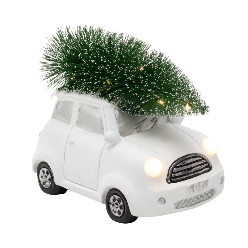 Home KDCA 15 LED-es kerámia fehér autó figura, beltéri kivitel, 11 db LED