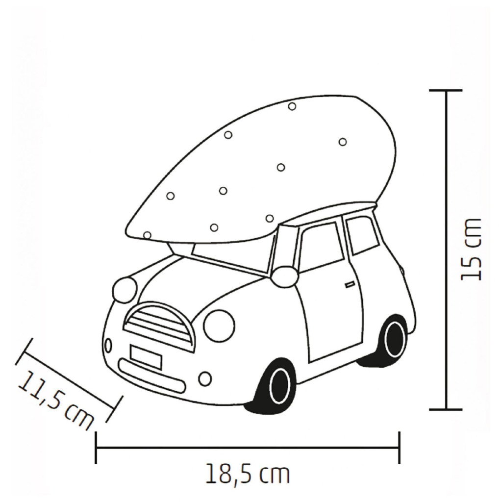 A részletgazdag kidolgozás és a karácsonyi fenyővel díszített autó nemcsak elegáns, hanem igazi karácsonyi varázslatot hoz otthonába. Beltéri használatra tervezve, ez a kerámia figura 2 darab 1,5 V-os AAA elemmel működik (nem tartozék), így szabadon elhelyezhető a lakás bármely pontján. Legyen szó egy polcról, asztalról vagy az ablakpárkányról, az autó kompakt mérete (18,5 x 15 x 11,5 cm) lehetővé teszi, hogy bárhol elférjen, és azonnal magára vonzza a tekinteteket.