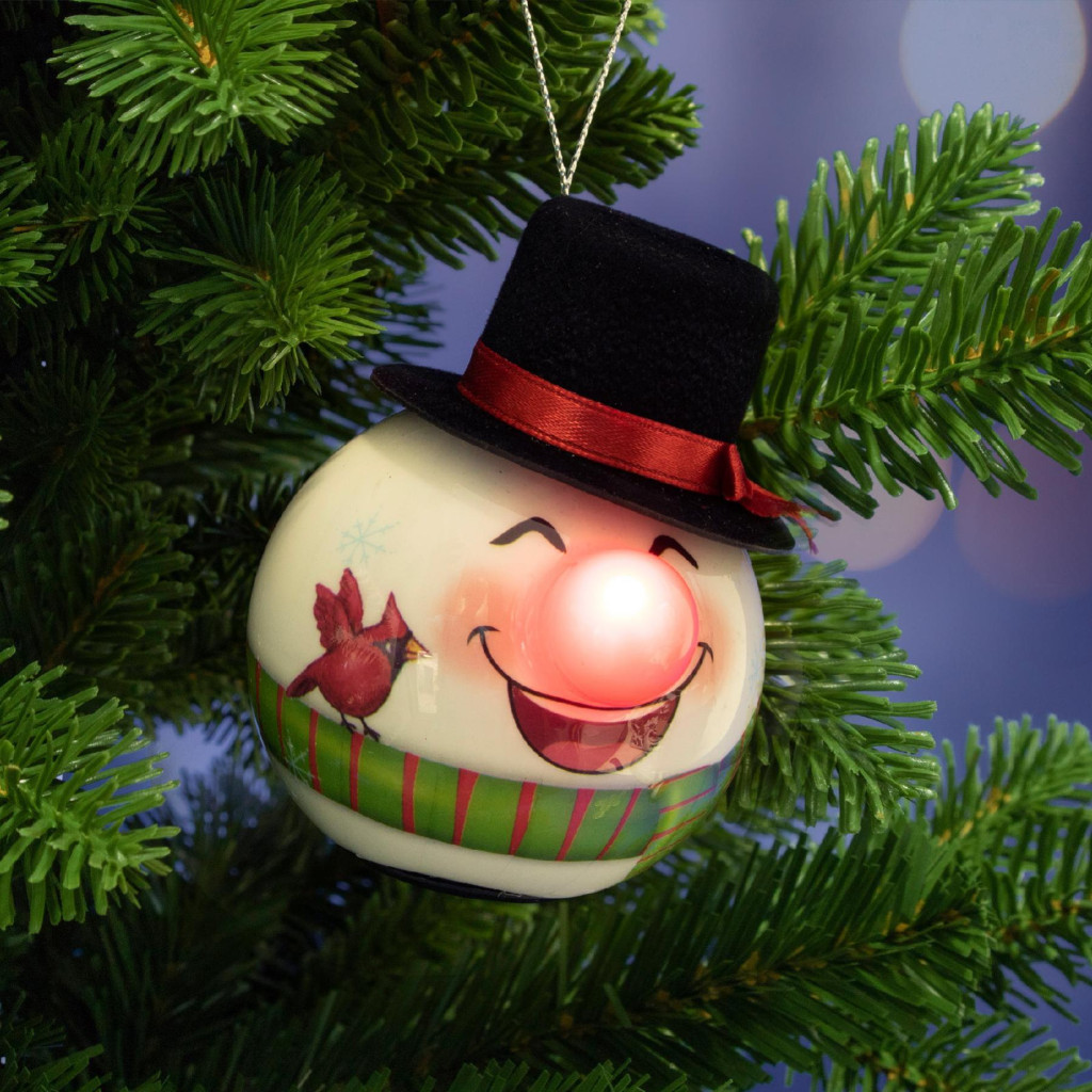 Ez a bájos kis dekoráció egy villogó piros LED-del van felszerelve, amely feldobja az ünnepi hangulatot. Az 6,5 cm átmérőjű hóember gömb tökéletes kiegészítője bármilyen karácsonyi dekorációnak. A termék tápellátását 3 db LR44 elem biztosítja (tartozék), így azonnal használatba vehető, és bármikor újabb fényhatást varázsolhat otthonába. A praktikus kialakítás és az egyszerű működés miatt könnyedén kombinálható más dekorációkkal is, és vidám villogásával garantáltan feldobja az ünnepi atmoszférát.