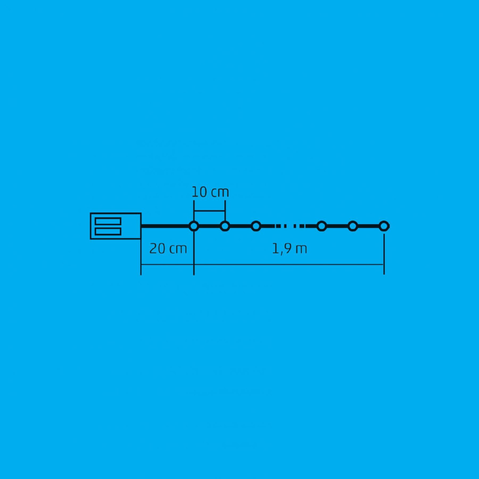fényfüzér hossza: 1,9 m • tápvezeték hossza: 20 cm