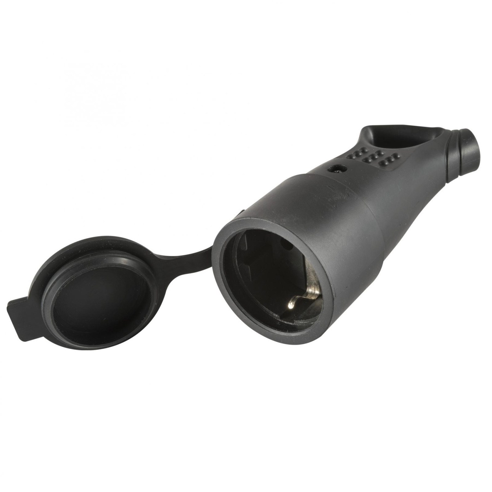 Home NGA 01 földelt aljzat 45°-os kábelvezetéssel, aljzat gyermekvédelemmel, kül- és beltéren is használható, max. 3680 W, fekete