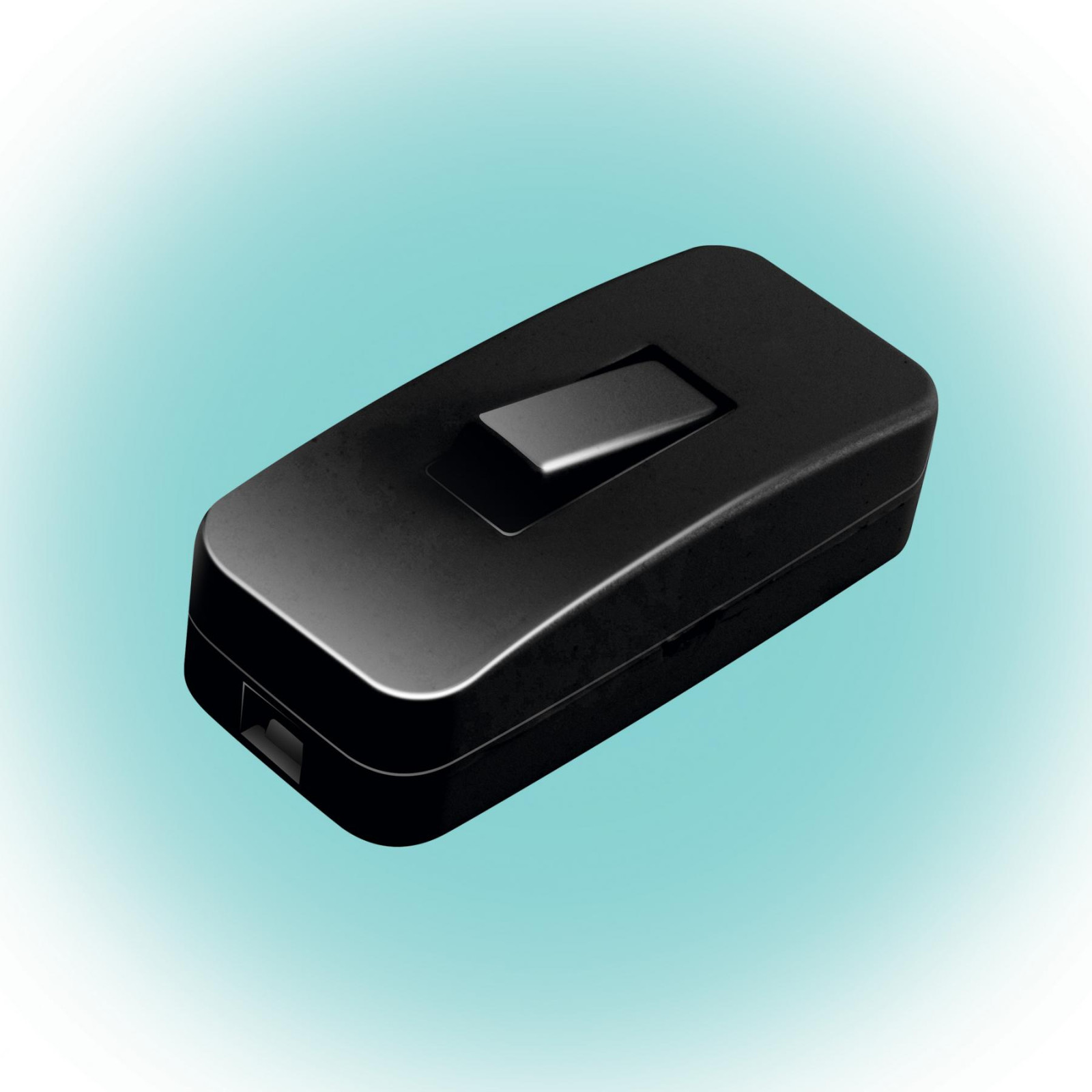 Home NV 1K/BK zsinórközi 1 pólusú kapcsoló, beltéri használatra, H03VVH2-F, 2X0,75 mm2 kábellel szerelhető, max. 4A, fekete