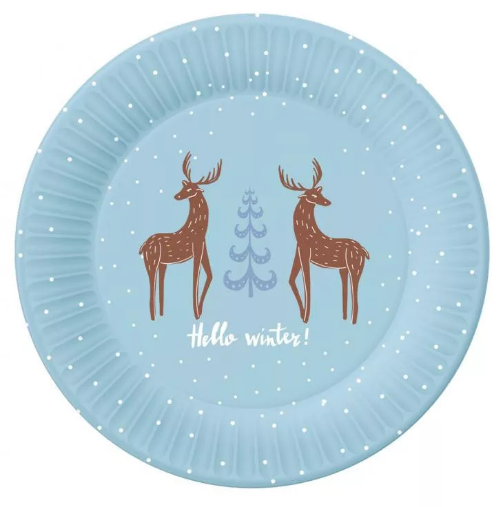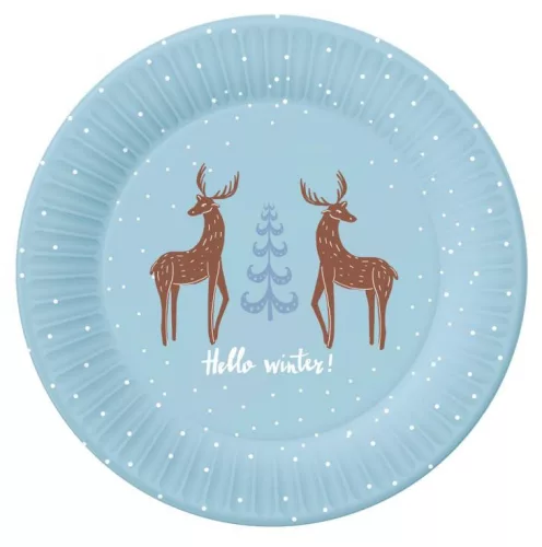 Karácsonyi Hello Winter Blue papírtányér 6 db-os 18 cm