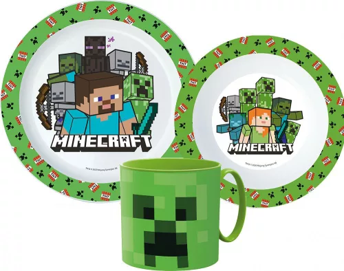 Minecraft Pixelcraft étkészlet, micro műanyag szett bögrével 265 ml