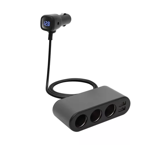 SAL SAU80W autós feszültségelosztó és USB töltő, 3.4A USB töltő, max.80Watt, fém burkolat, Voltmérő, autó-akkumulátor állapotának ellenőrzése, 12/24V járművekhez