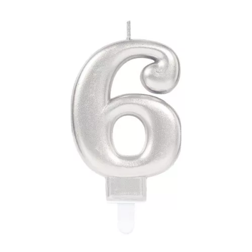 Ezüst Silver számgyertya, tortagyertya 6-os