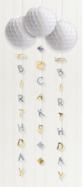 Silver, Gold , Happy Birthday függő dekoráció 3 db-os szett