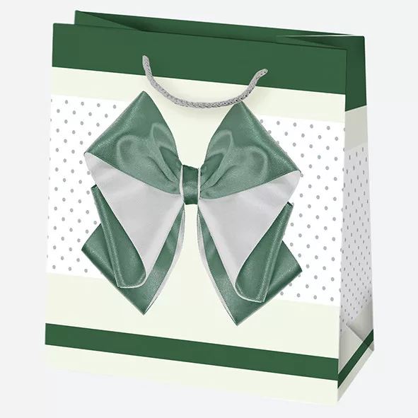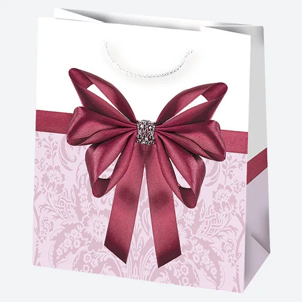 Színes Bow papír ajándéktasak, ajándékzacskó 15,5x15,5x8 cm