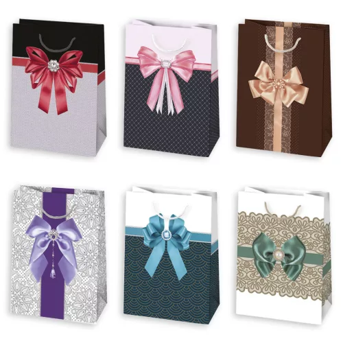 Színes Elegant Bow papír ajándéktasak, ajándékzacskó 23x32x11 cm