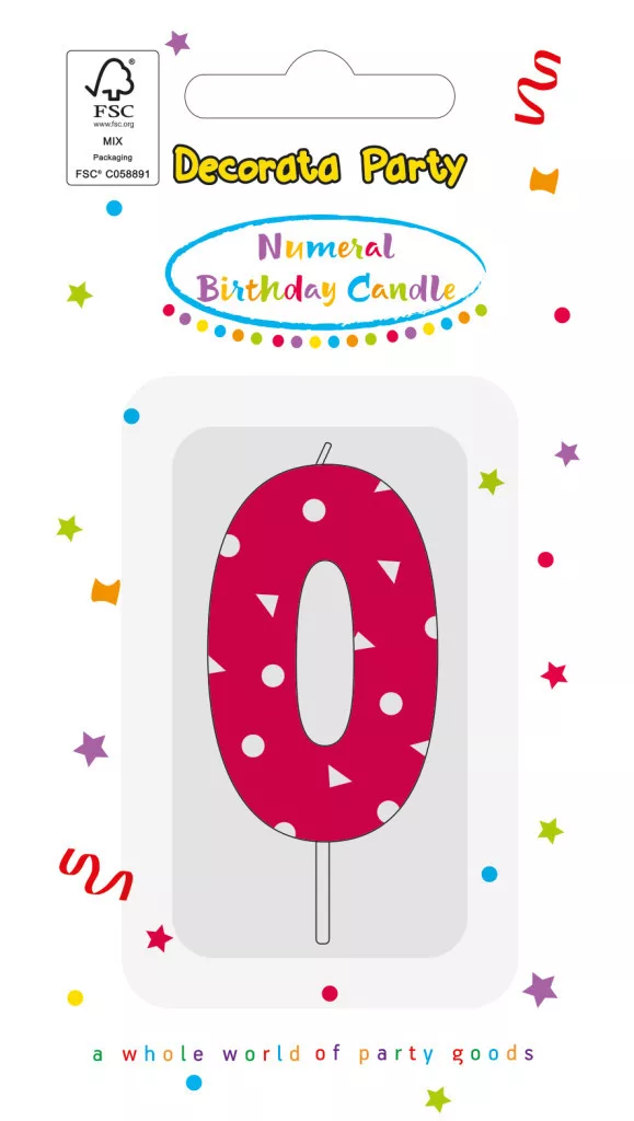 Színes Pink Pattern 0-ás tortagyertya, számgyertya