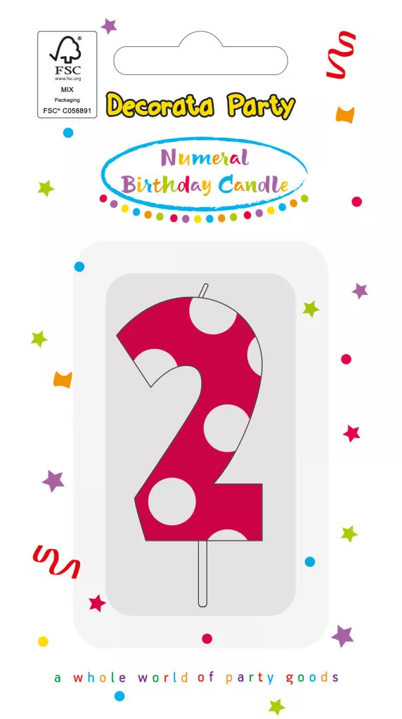 Színes 2-es tortagyertya, számgyertya