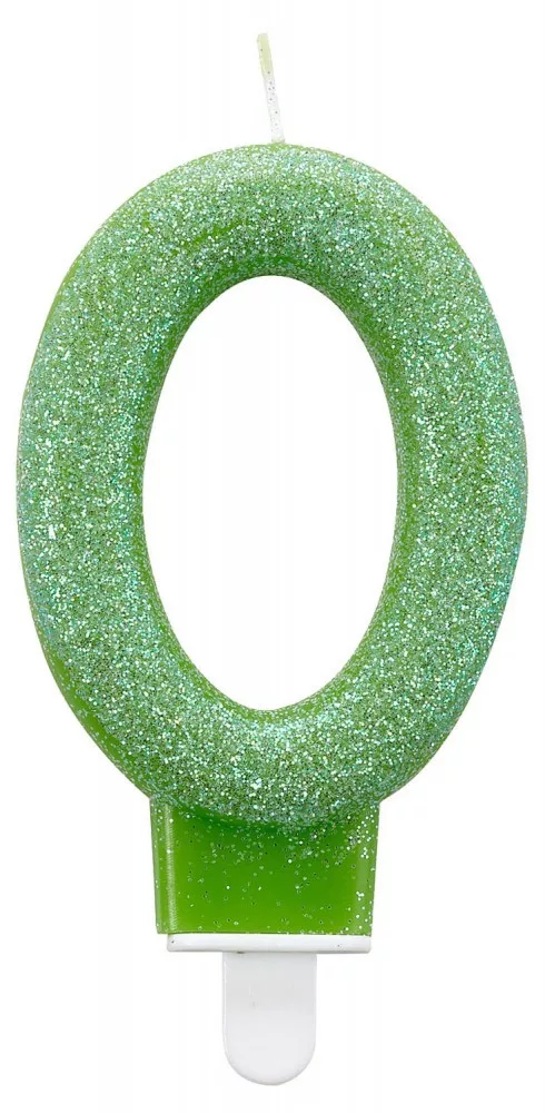 Színes Green csillogó tortagyertya, számgyertya 0-ás