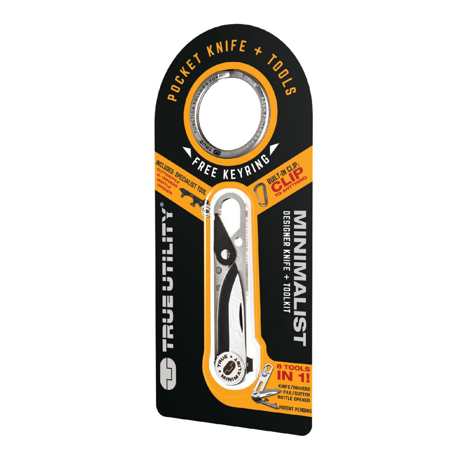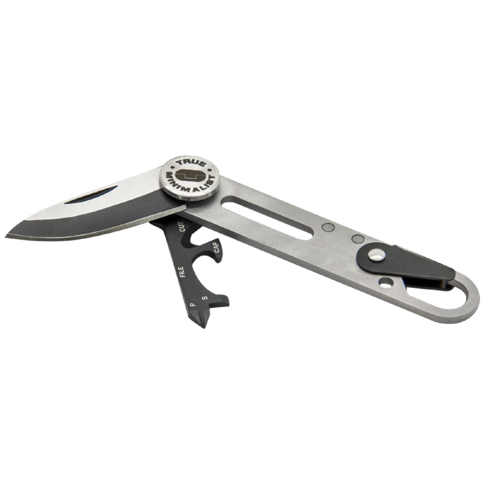 True Utility Minimalist, TU208K, multifunkcionális szerszám, designer kés, fekete titánbevonat, rozsdamentes acél penge