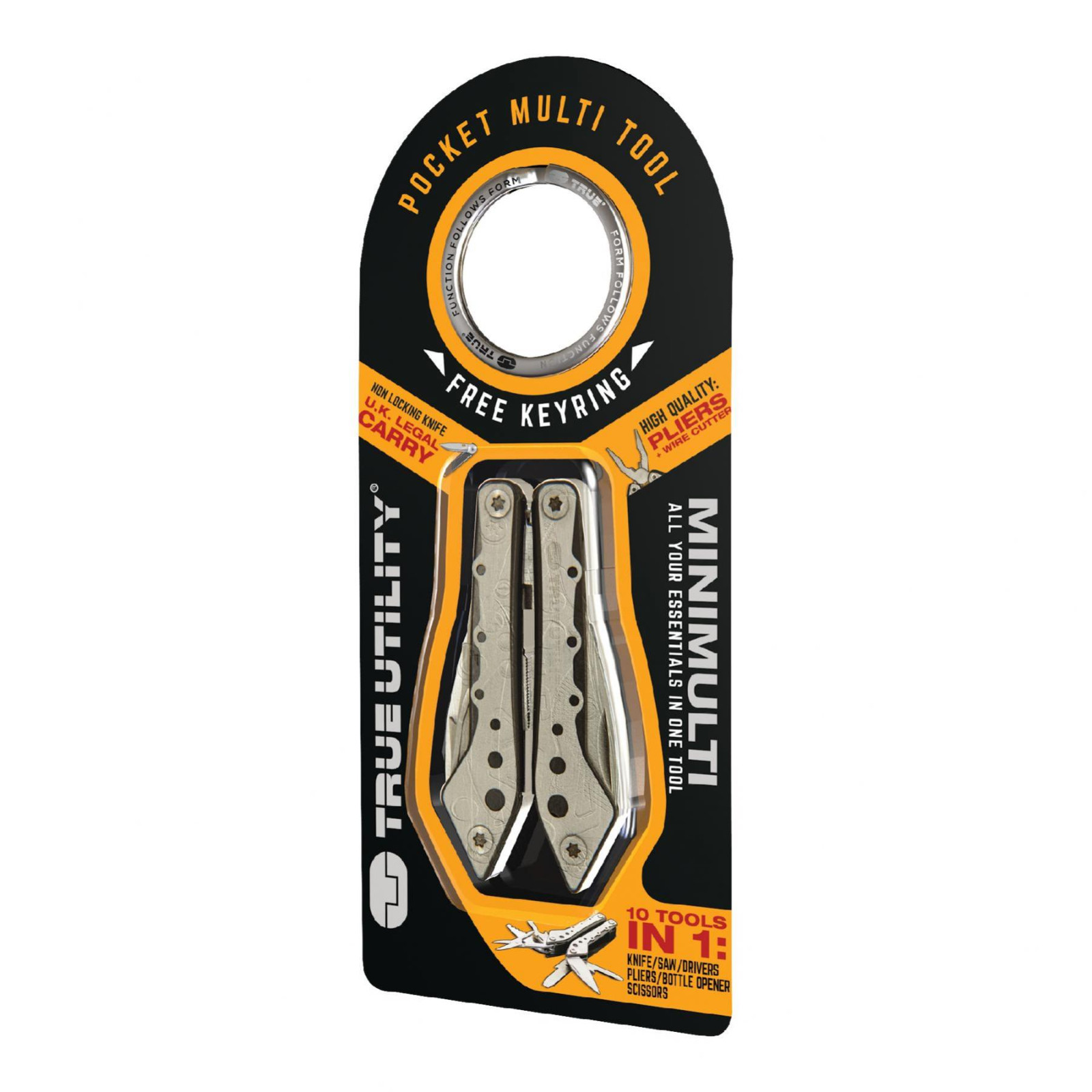 A True Utility Minimulti TU195K különösen kis méretével (összecsukva csupán 7,6x3,8x1,6 cm) tűnik ki, ami lehetővé teszi, hogy zsebben vagy kulcstartón is magával vihesse. A rozsdamentes acélból készült szerszámok ellenállnak az időjárás viszontagságainak, míg az ergonomikus kialakítás biztosítja a kényelmes és biztonságos használatot.