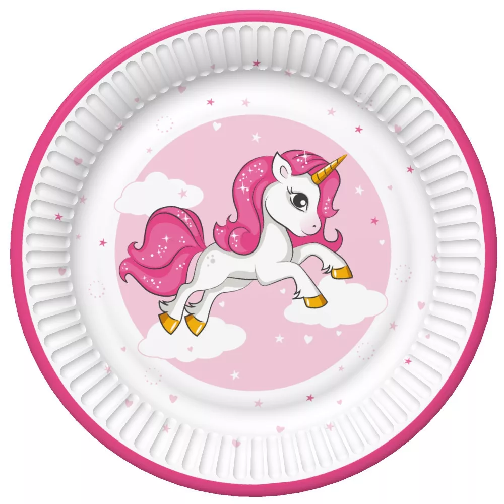Unikornis Pink Heart papírtányér 8 db-os 22,7 cm