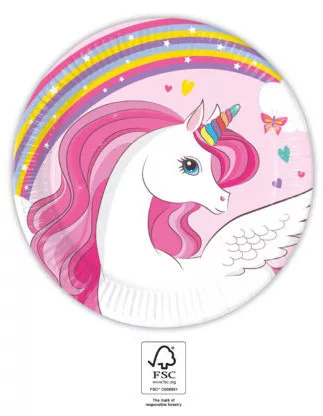 Unikornis Rainbow Colors papírtányér 8 db-os 20 cm FSC