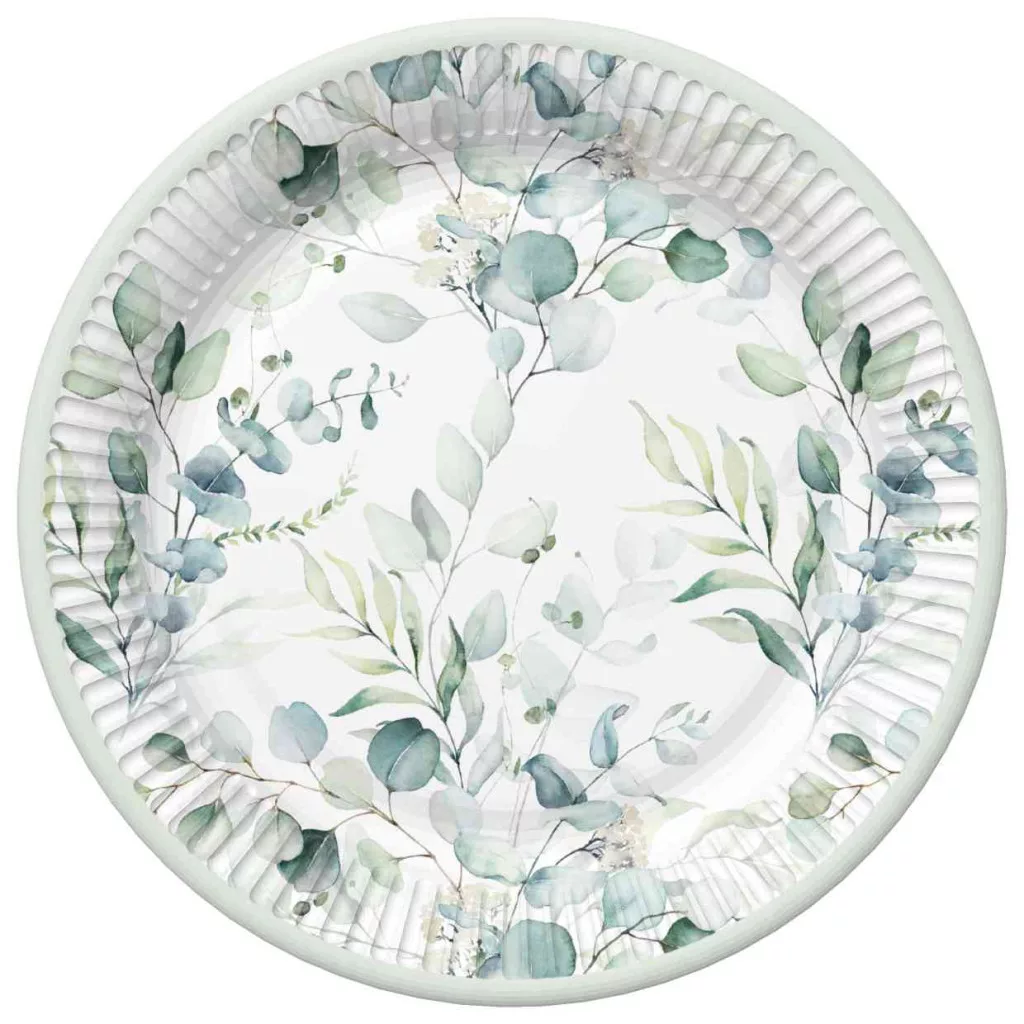 Virág Eucalyptus Twigs papírtányér 8 db-os 22,7 cm