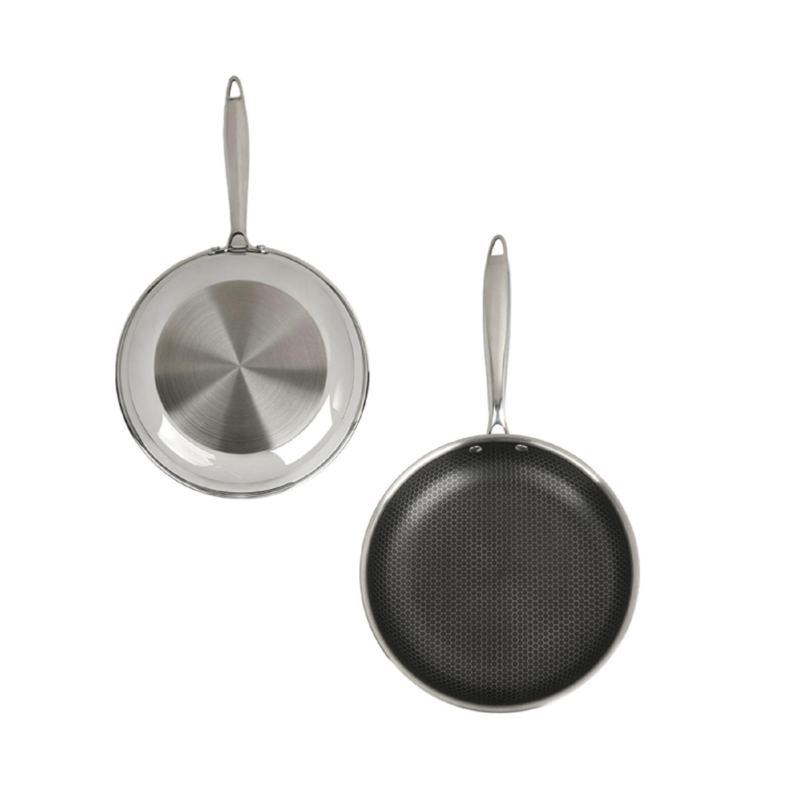A serpenyő egy alumínium és két rozsdamentes acél rétegből áll, amely gyors felmelegedést és egyenletes hővezetést biztosít. Ennek köszönhetően az ételek nem égnek le, a hő stabil marad, és minden falat egyformán átsül. A masszív kialakítás hosszú távon is megbízható teljesítményt nyújt.