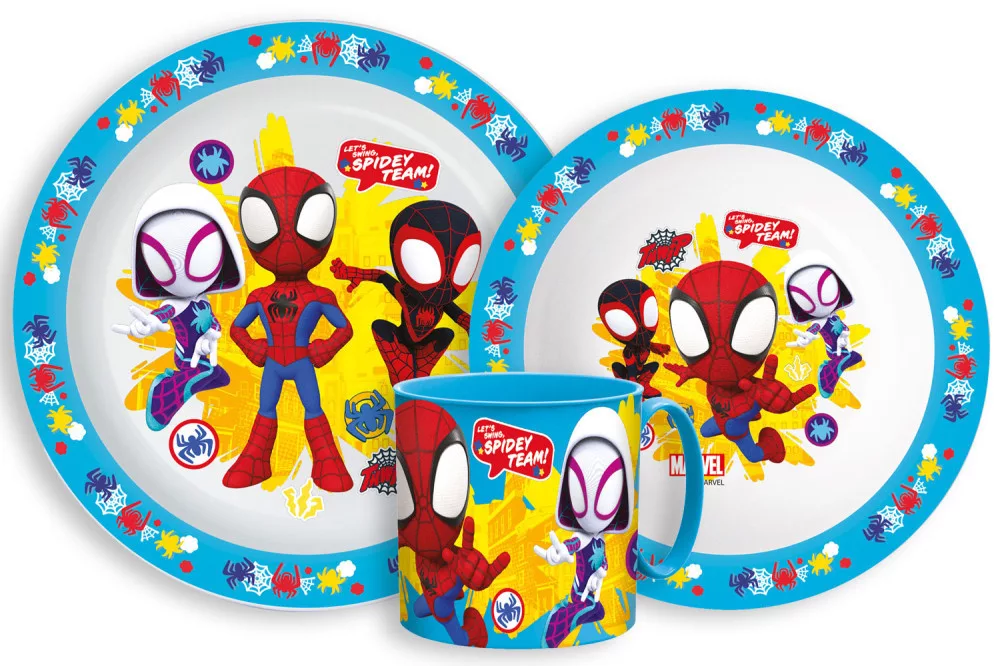Pókember Spidey étkészlet, micro műanyag szett bögrével 265 ml