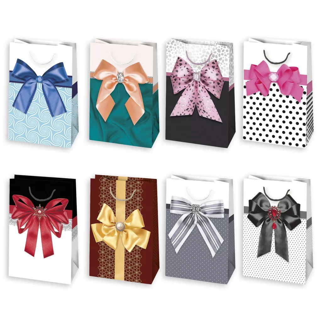 Színes Elegant Bow papír ajándéktasak, ajándékzacskó 10x16x6 cm
